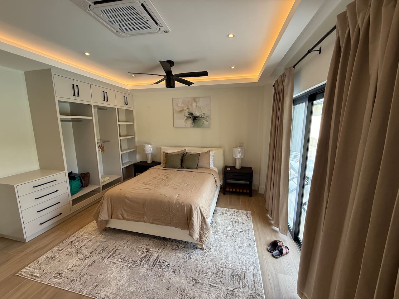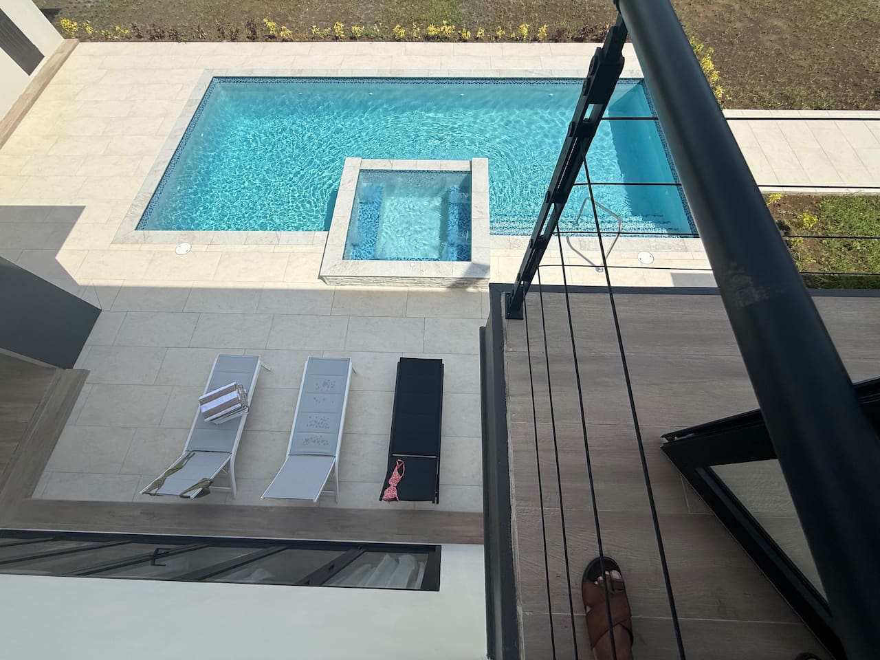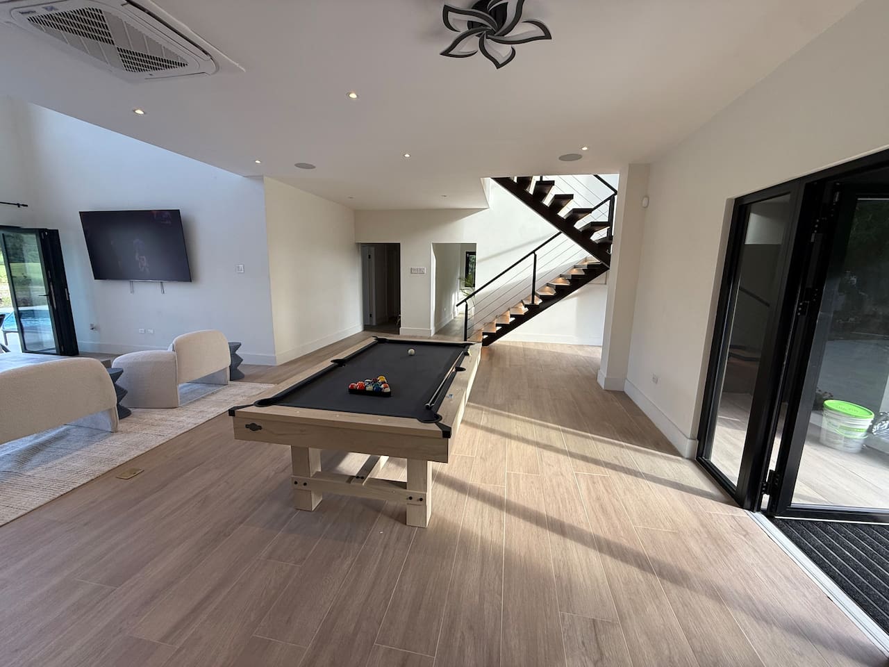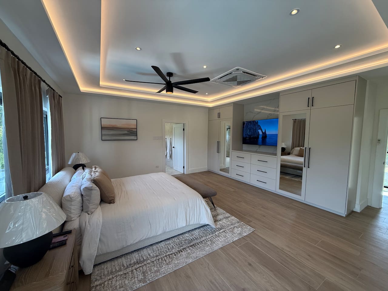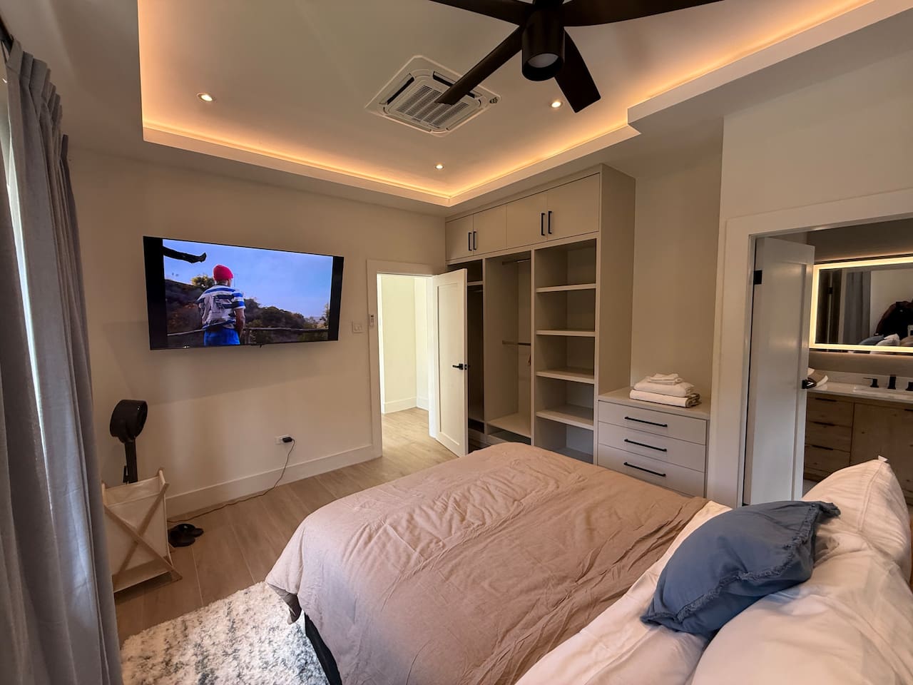 Each of the five lavish bedrooms features a private en-suite bathroom, ensuring comfort and privacy for all. The villa boasts a stunning private pool and a unique heated waterfall jacuzzi, perfect for relaxation. For entertainment, guests can enjoy the exclusive private cinema room, a rare amenity that sets Immacunique apart. The gourmet kitchen and wet bar are fully equipped for culinary adventures, while the elegant decor and architectural design create a sophisticated ambiance throughout.