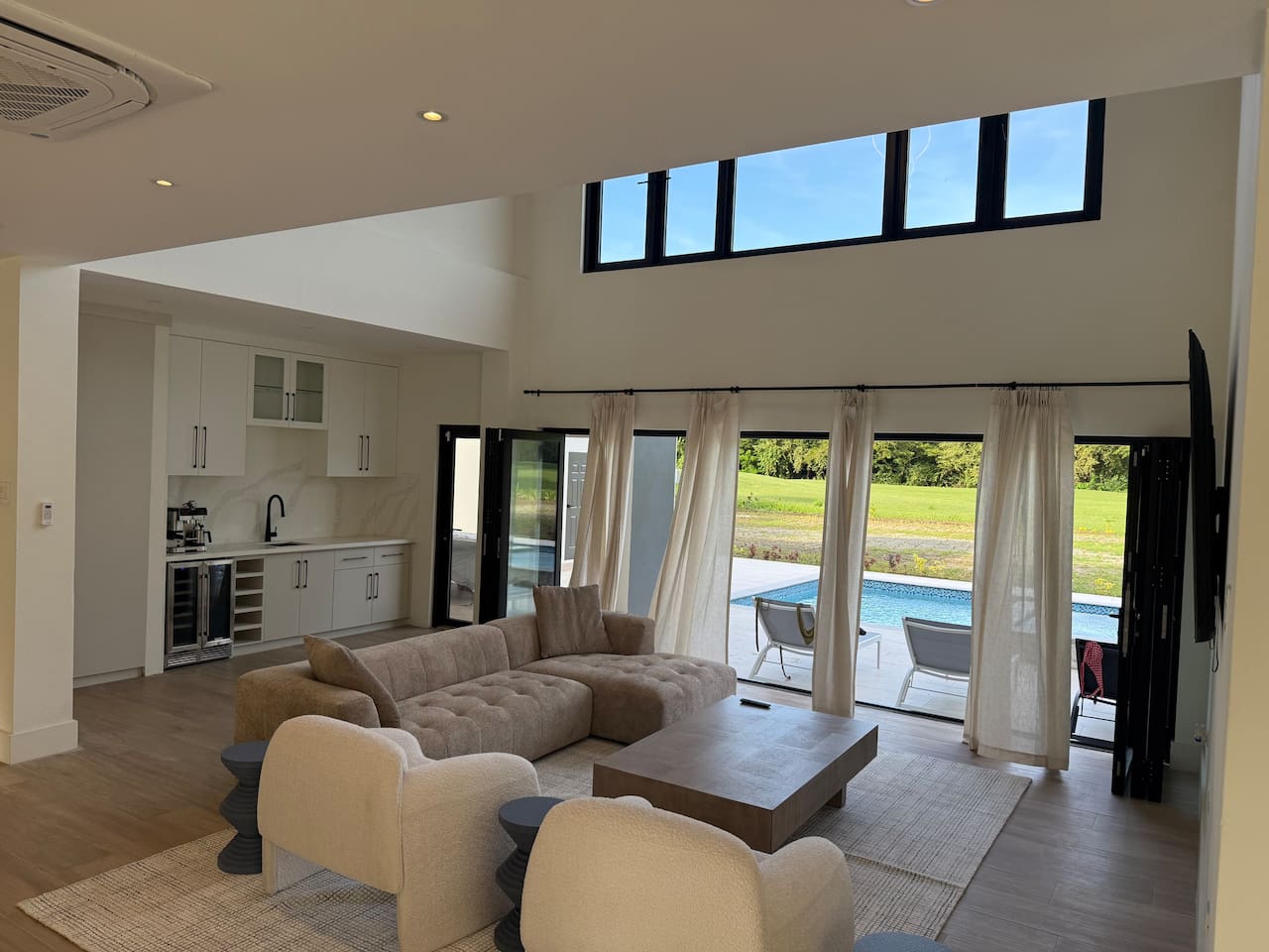 5 Bedrooms • 7 Bathrooms (5 full, 2 half) 7 Baths (5 full, 2 half) • Sleeps 14-16Discover Immacunique, an exquisite 5-bedroom luxury villa nestled within the prestigious Tobago Plantations. Designed for discerning travelers and large groups of up to 16 guests, this modern Caribbean retreat offers an unparalleled vacation experience in Lowlands, Tobago.